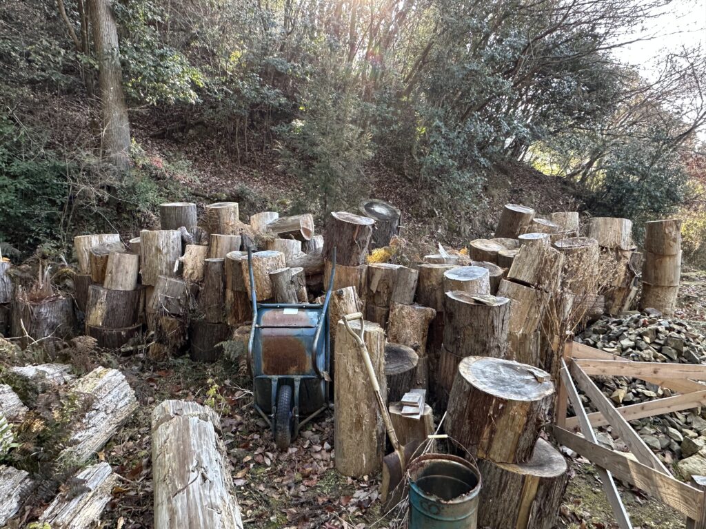 その工事の最中で、写真にある無数の短い丸太が置きっぱなしになって