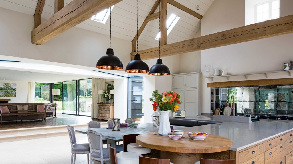 無垢の木の床、梁を見せた天井、自然素材の壁、手触りの良い家具、本物の素材は光を柔らかく反射し、空気までやさしく変えます。なのでまずは床・天井・テーブルなど「面積の大きい部分」を天然木にする事をお勧めします。