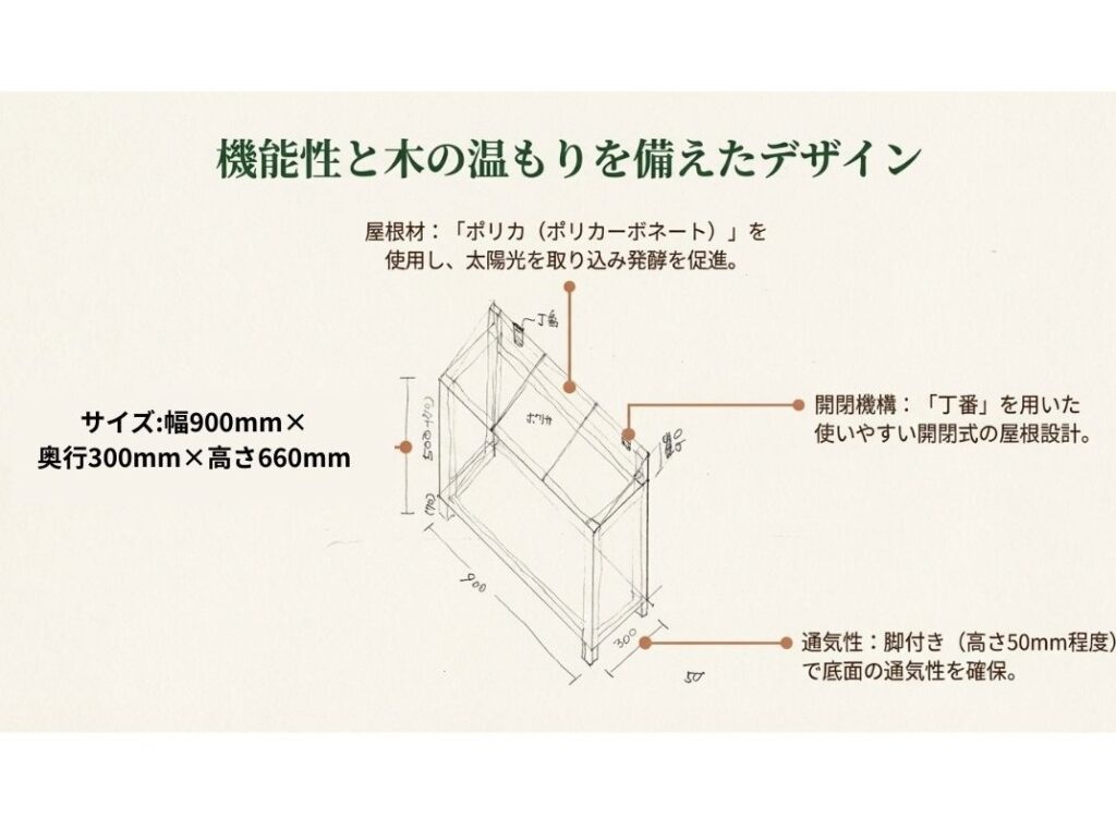 その木材を使って家庭用コンポストを作ります。
