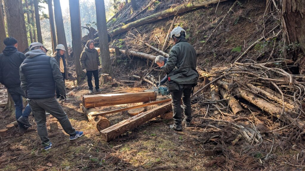 このイベントでは、里山の木を伐るところから始め、
