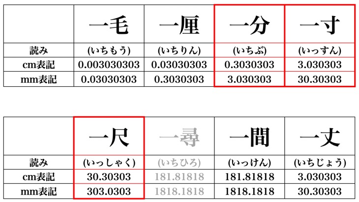 例えば、一寸法師の一寸はこの長さの単位からきています。身長3センチ男子です。(余談、一寸法師が武器に使ったのは針ですが、この針はきっと一寸法師自身より大きかったはず。自分の身長より大きい針を武器として振り回していたことになります。)